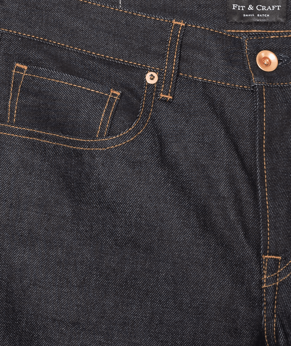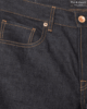 The Hx-01 is a tapered fit handmade jeans with 5 cut pockets. We handcraft each one from an Italian selvedge denim with a Red selvedge ID. This fabric is dyed in an unique dark blue, indigo color. The jeans are of medium rise with tapered leg and a chain stitched hem. We added to the jeans a copper button fly and rivets for classic looks. The front pocket bags are of heavy cotton drill. Another eye-catching aspect of this garment, are the back pockets, which are of rounded shaped with a fine stitch. Finally, to give your denim our identity and craftsmanship, a special stitched hand embroidery has been added in the right back pocket.